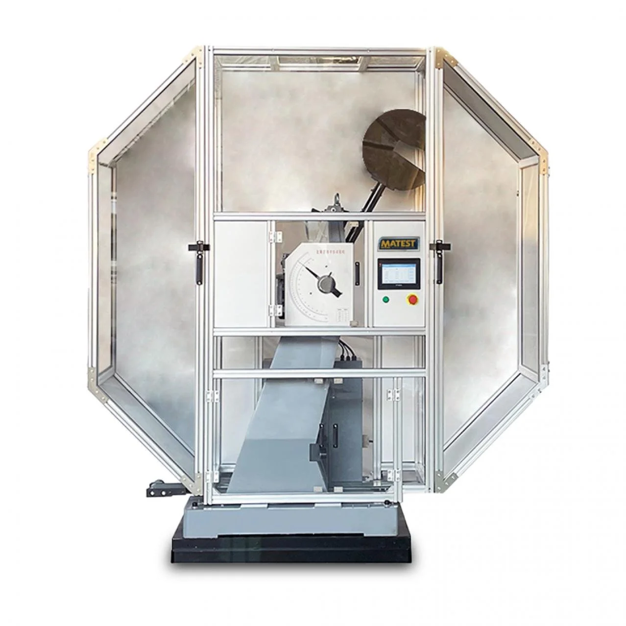 Evaluación de resiliencia del acero mediante energía de impacto hasta 300 J. Diseño robusto para uso intensivo, retiro automático de probetas y alta repetibilidad en ensayos normalizados.